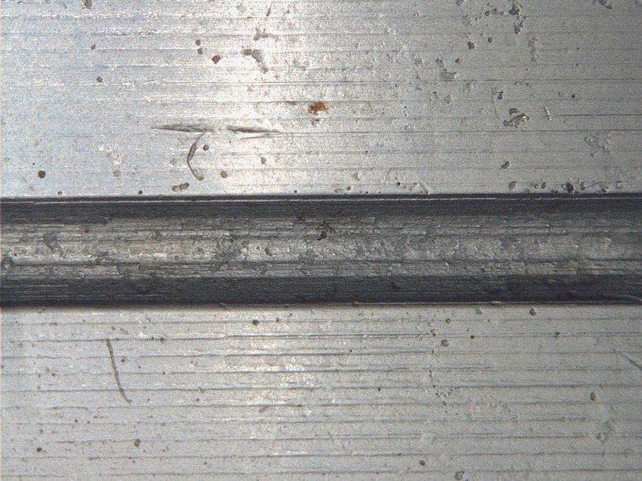 The drive rolls must also have the correct groove geometry and be properly aligned. Aluminum welders have always been told to use only U-grooved drive rolls. While a couple of other options are out there, the U-groove is by far the most common. The U-groove drive rolls avoid crushing or deforming the aluminum welding wire. These feed the wire efficiently while keeping its round shape and preventing shaving that could clog up the liner. Once you make sure you have the correct drive roll groove size, you should also take a look at the quality and geometry of the grooves under magnification (10x is usually enough) to ensure the grooves are smooth.